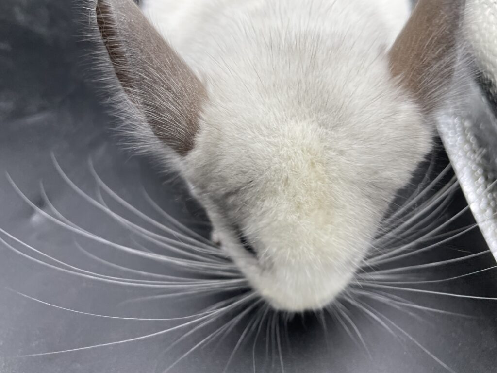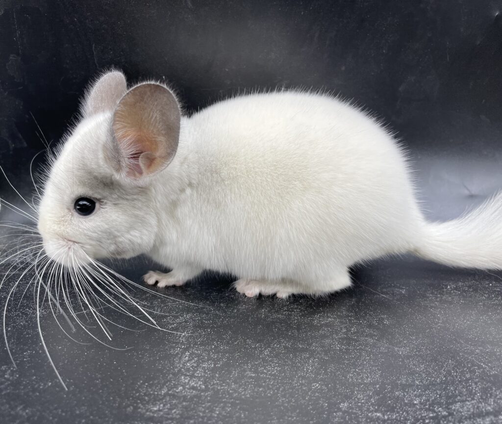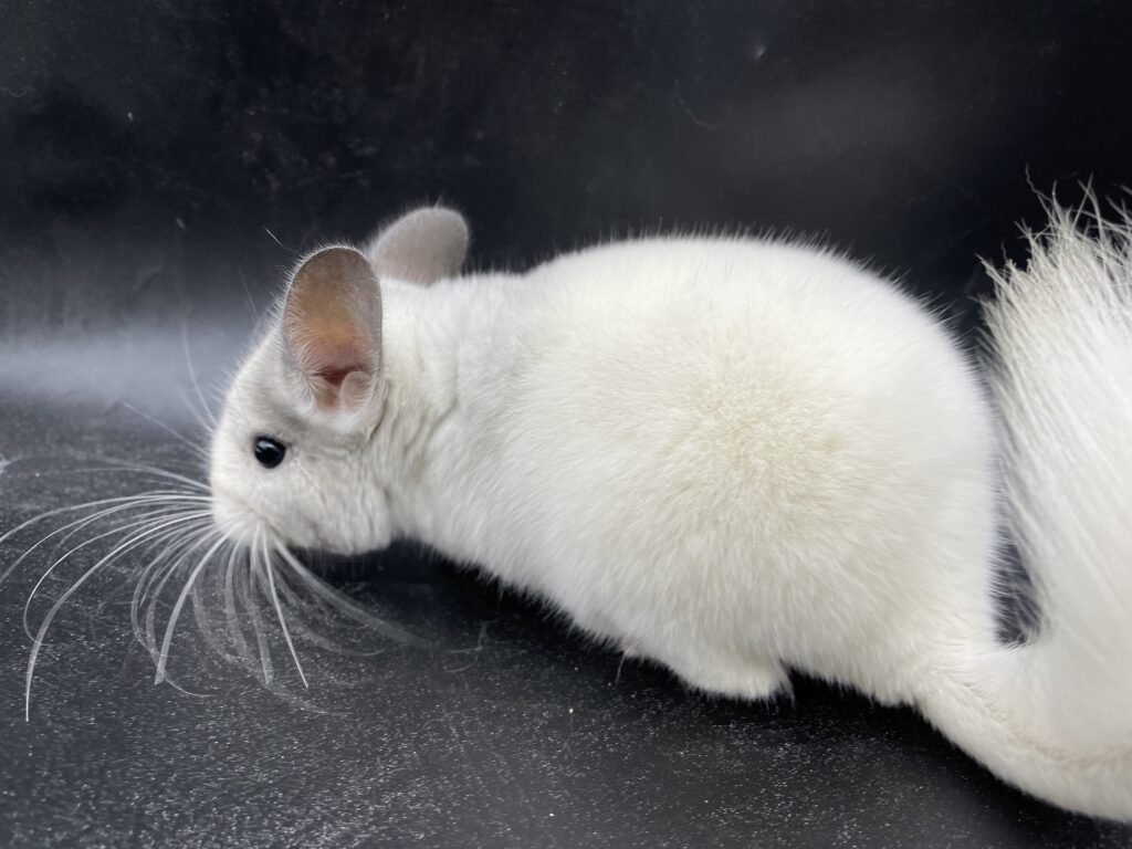 全身真っ白のほぼフルホワイトの女の子ちゃん お顔が薄ら淡いシルバーの差し毛でハチワレっぽい柄が可愛い子です💓 左あごの下付近にグレーのぶち柄もはいっています🌟 首の後ろ付近薄シルバーです。 尻尾も真っ白です。 いちばん元気いっぱいで物凄く動き回りますが、抱っこは大人しくさせてくれます🌟 カイカイも出来ます❣️