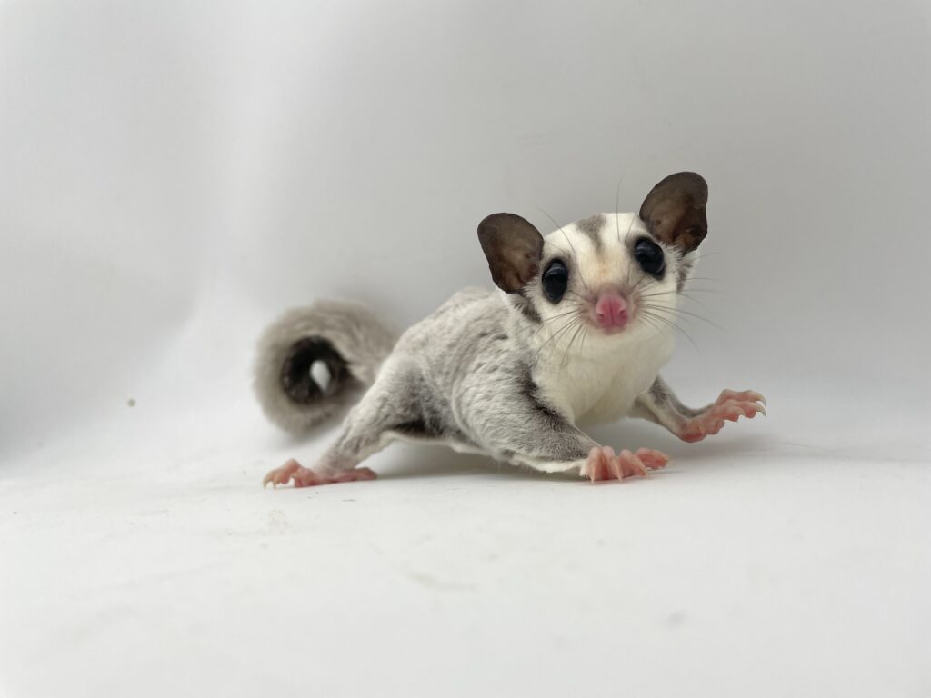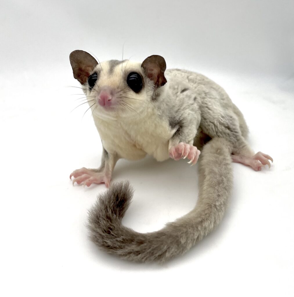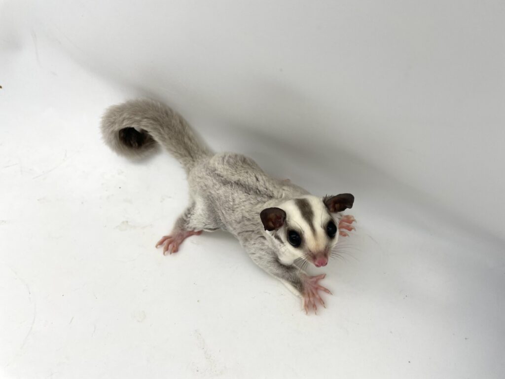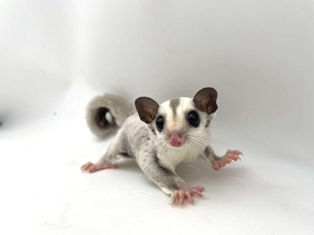| 岡山の提携ブリーダー しっぽのこころさん▶https://www.instagram.com/shippo.no.kokoro/ からやってきたモモンガちゃんです。 まん丸のお顔がとってもキュートな子☆彡 現在、しっかりした良い体格の美男子に成長しております!美しいプラチナの男の子くんです。