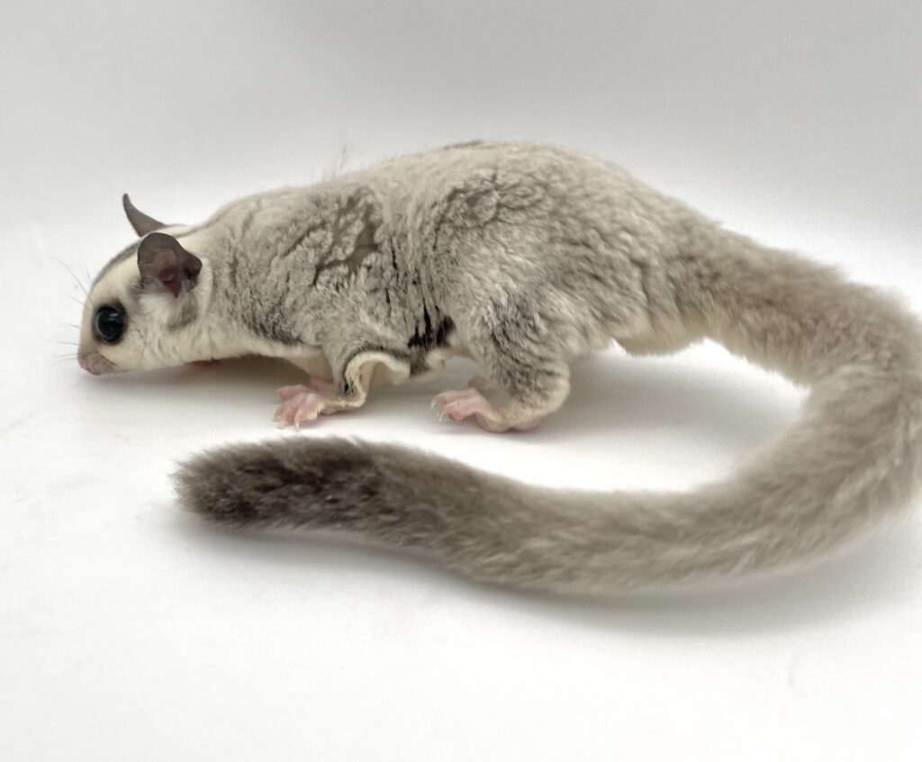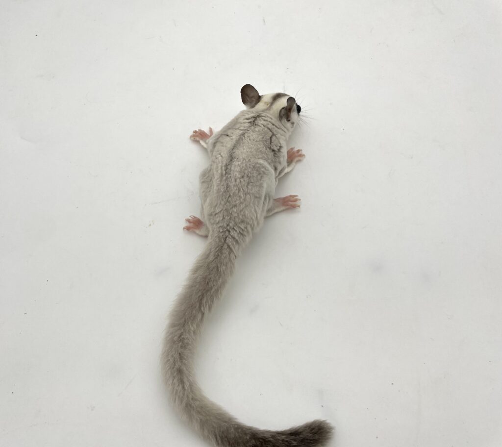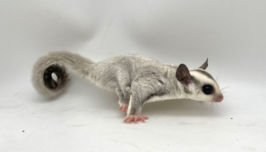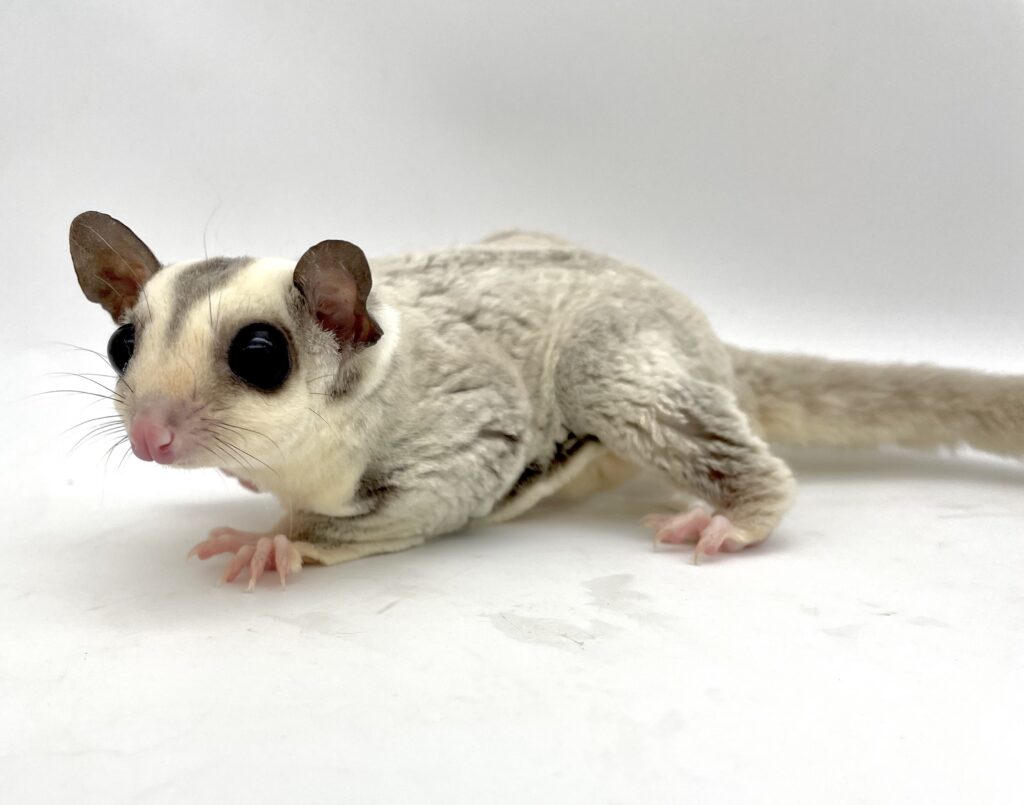 | 岡山の提携ブリーダー しっぽのこころさん▶https://www.instagram.com/shippo.no.kokoro/ からやってきたモモンガちゃんです。 まん丸のお顔がとってもキュートな子☆彡 現在、しっかりした良い体格の美男子に成長しております!美しいプラチナの男の子くんです。