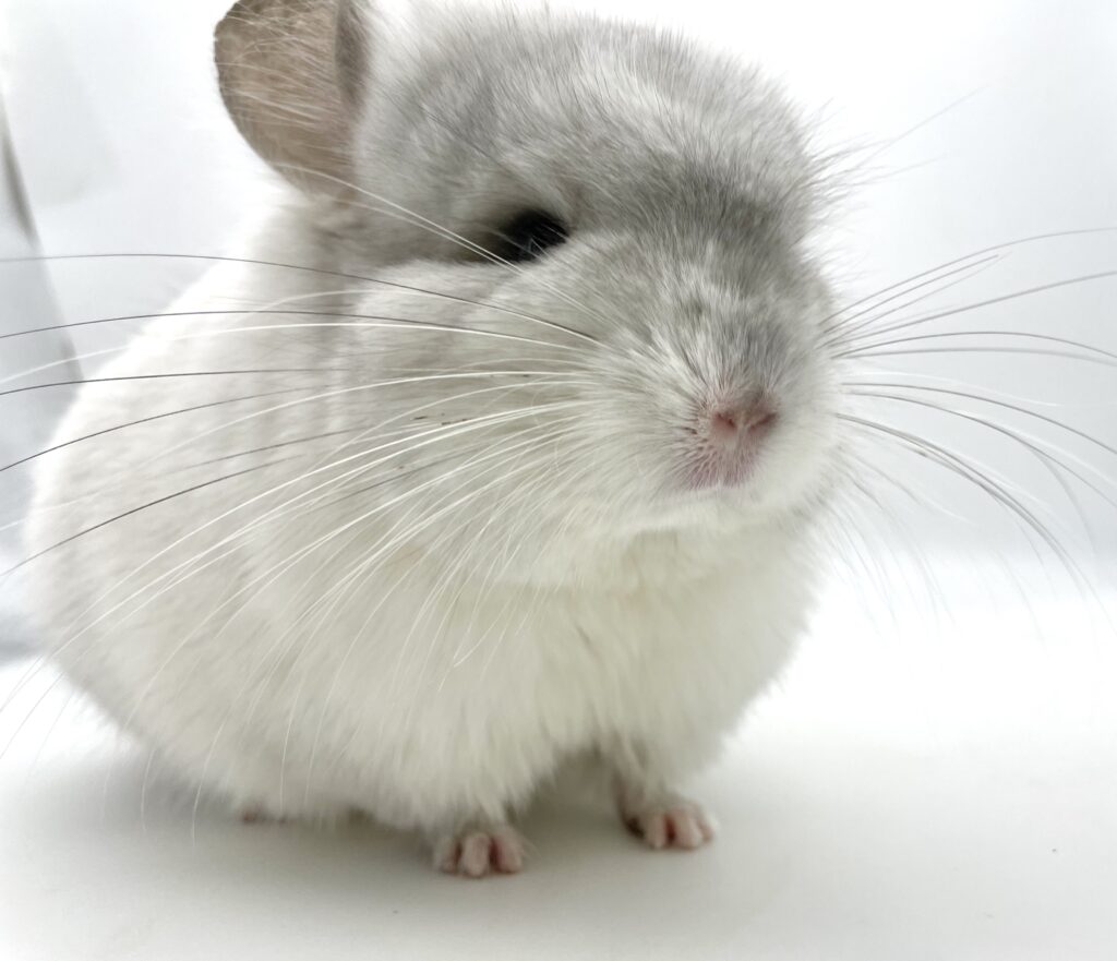 誕生日・両親血統情報の分かる子達です。 整ったお顔立の珍しいホワイトバイオレットアンゴラチンチラ男の子くん 非常に可愛いまん丸なお顔、コンパクトなボディパーツがとっても可愛い子です♪ ふわふわ・サラサラなとっても綺麗な毛並みです☆彡 穏やかな性格で寄ってきてくれます。 安心サイズです😊