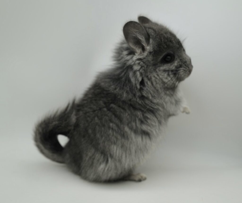 ポーランド&アメリカ血統の両親から生まれた国産アンゴラチンチラです。 一時期人工保育を行い育てたため、生後半年以降まで経過観察していました。 三つ子とも充分体格良くなりました、健康上・健診も問題ありませんでした☆彡 元気いっぱいの明るい性格の子です。 三つ子のなかでは中くらいの色の濃さの子です、丸顔と小耳がとっても可愛い子です☆彡 安心サイズ♪